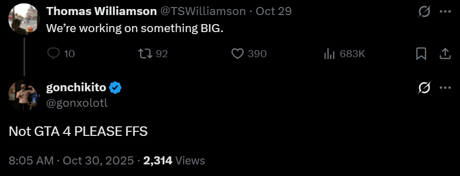 Хотя за прошедшие годы разработчики выпустили множество патчей, и сегодня трилогия выглядит куда более стабильно, осадок у сообщества остался. Поэтому под постом Уильямсона в X комментарии в основном негативные. Одни пользователи прямо пишут, что надеются больше никогда не увидеть ремастеры GTA от Grove Street Games, другие иронизируют, что студия готовит «последний ядерный удар» по фанатам серии.