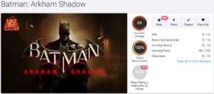 Недоступная для большинства Batman: Arkham Shadow оказалась неплохой игрой. Если, конечно, вы доверяете современным критикам. На портале...