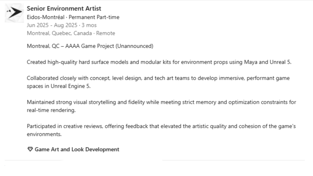 AAAA-игра упоминается в профиле художника Eidos Montreal