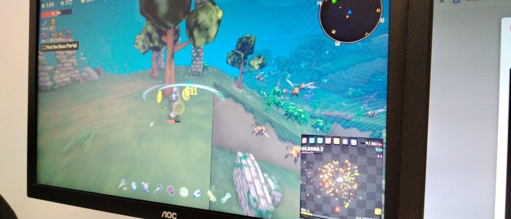 Скриншот игрока: он играет в Megabonk, а Desktop Defender запущен справа внизу
