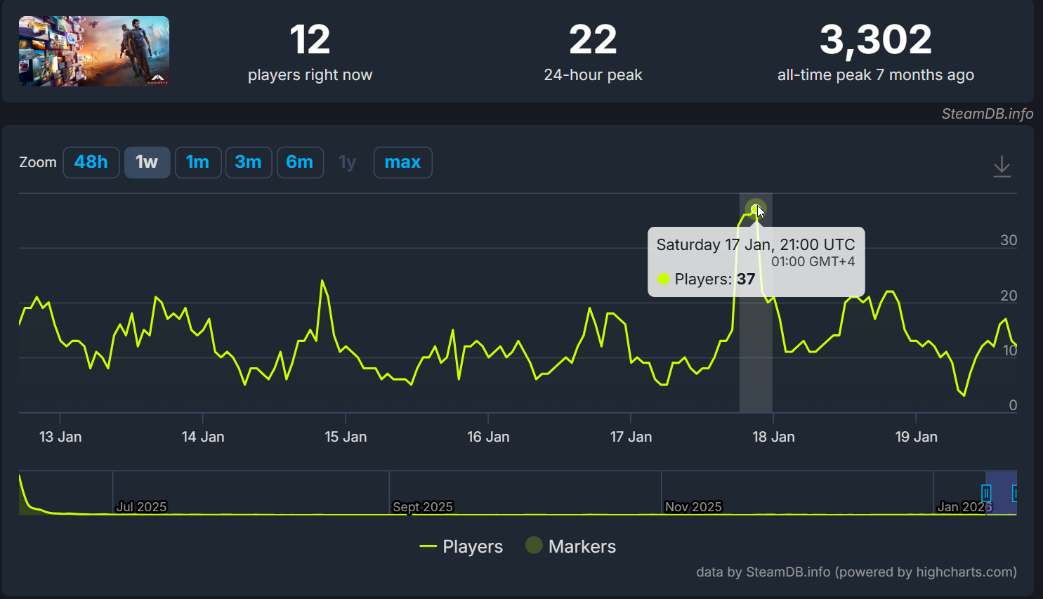 Активность у стримеров дала свои плоды, хотя масштаб «успеха» выглядит специфически. Пиковый онлайн MindsEye в Steam подскочил с 14 до 37 человек.