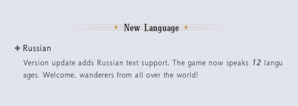 Патч стал второй частью большого дополнения Hexi. Главным его дополнением в плане контента стал снежный регион Лянчжоу, в котором развернется следующая сюжетная глава и битвы с несколькими новыми боссми. Игроков ждет новое оружие, квесты, косметические предметы и временные события. С подробностями можно ознакомиться на странице игры в Steam.