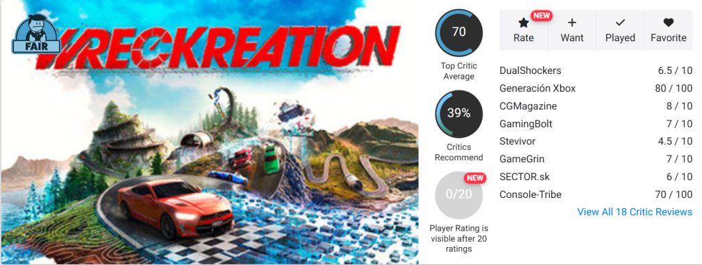Западные издания вроде CGMagazine и XboxEra в своих обзорах были куда более благосклонны, отмечая, что Wreckreation действительно возвращает дух Burnout и может понравиться фанатам аркадных гонок. Но даже положительные рецензии признают: проект нишевый и вряд ли сможет привлечь широкую аудиторию.